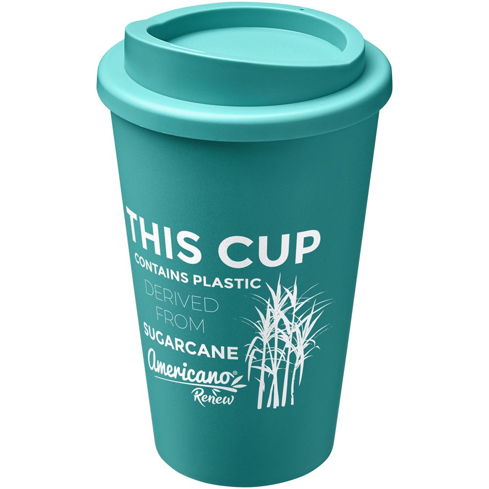 Doppelwandiger Isolierbecher mit Schraubdeckel und 350 ml Fassungsvermögen. Enthält 25 % Kunststoff, der aus Zuckerrohr gewonnen wird. Diese erneuerbare Quelle absorbiert während des Wachstums Kohlendioxid und ist ein Nebenprodukt der Zuckerindustrie. Durch die Verwendung von Zuckerrohr wird bei der Herstellung jedes Bechers weniger Öl verbraucht. Der Becher ist zu 100 % recycelbar und in einem kompostierbaren Beutel verpackt. Hergestellt in Großbritannien.