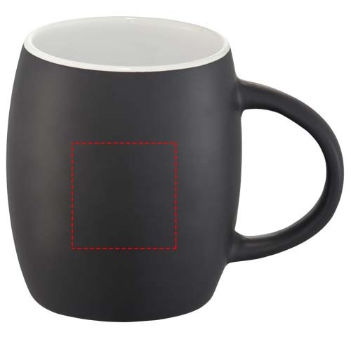 Keramikbecher mit matter Oberfläche und Unsersetzer aus Holz. Spülmaschinenfest EN12875-1 konform (bei bis zu 125 Waschvorgängen) für alle Werbeanbringungsmethoden. Volumen 400 ml. Verpackt in einer Avenue Geschenkbox.