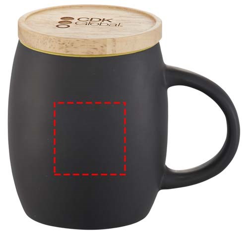 Keramikbecher mit matter Oberfläche und Unsersetzer aus Holz. Spülmaschinenfest EN12875-1 konform (bei bis zu 125 Waschvorgängen) für alle Werbeanbringungsmethoden. Volumen 400 ml. Verpackt in einer Avenue Geschenkbox.
