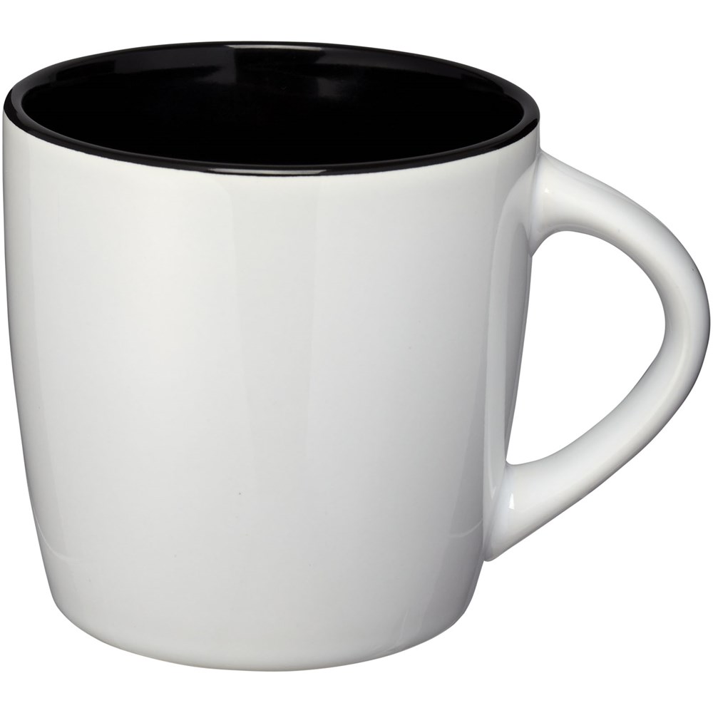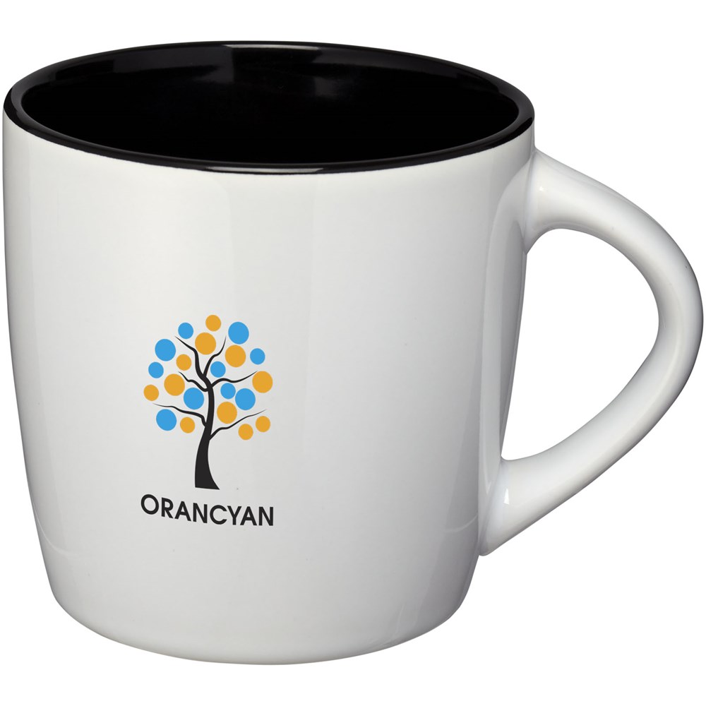 340 ml Tasse mit glänzender Außenoberfläche und farbigem Akzent innen. Spülmaschinenfest EN12875-1 konform (bei bis zu 125 Waschvorgängen) für alle Werbeanbringungsmethoden. Verpackt in weißer Geschenkbox.