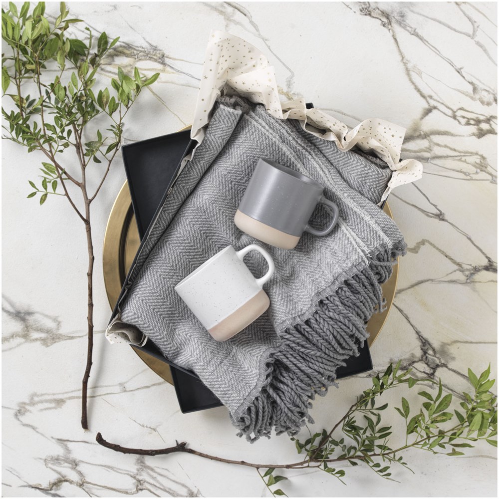 Keramikbecher mit unglasiertem Boden. Spülmaschinenfest EN12875-1 konform (bei bis zu 125 Waschvorgängen) für alle Werbeanbringungsmethoden. Das Fassungsvermögen beträgt 360 ml. Präsentiert in einer weißen Geschenkschachtel.