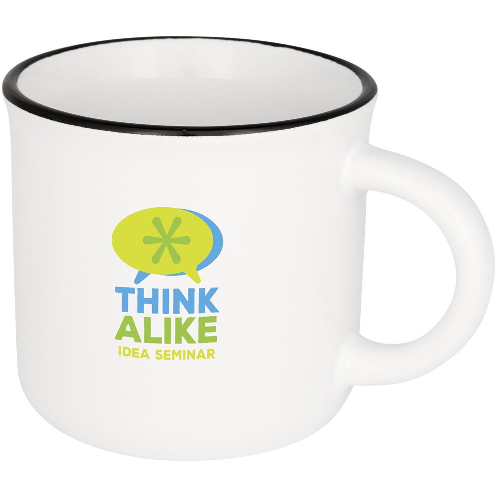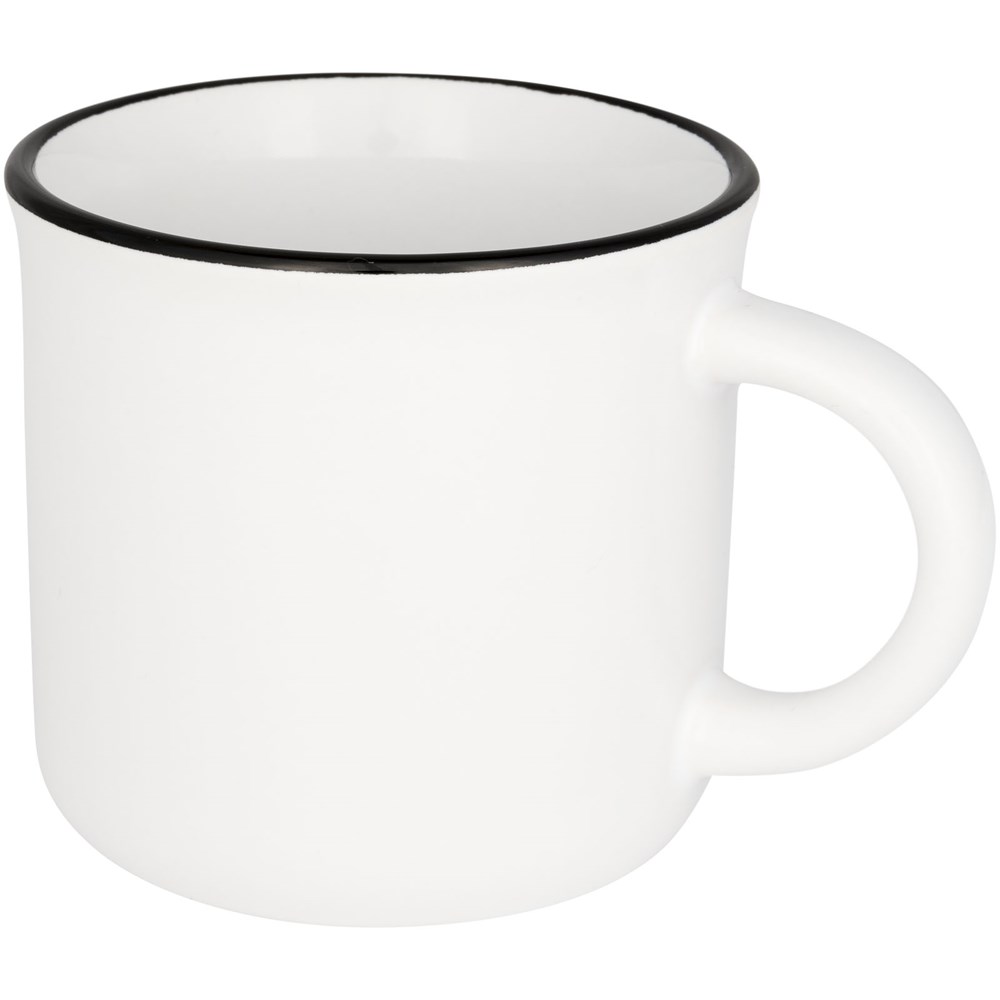 Vintage Keramiktasse. Das Fassungsvermögen beträgt 310ml. Spülmaschinenfest EN12875-1 konform (bei bis zu 125 Waschvorgängen) für alle Werbeanbringungsmethoden. Wird in einem weißen Karton präsentiert.