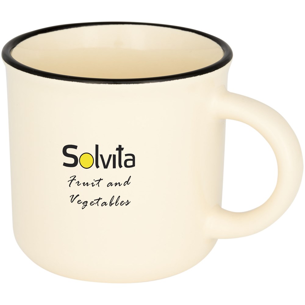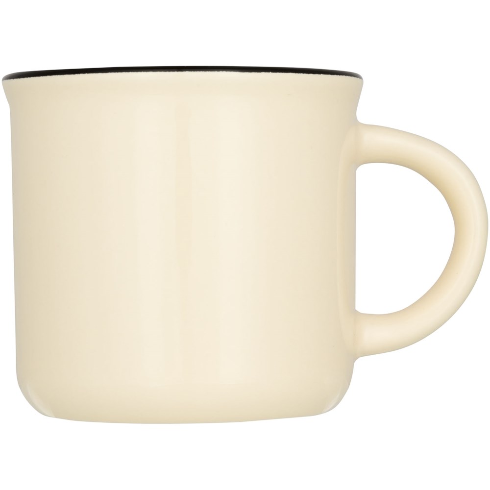 Vintage Keramiktasse. Das Fassungsvermögen beträgt 310ml. Spülmaschinenfest EN12875-1 konform (bei bis zu 125 Waschvorgängen) für alle Werbeanbringungsmethoden. Wird in einem weißen Karton präsentiert.