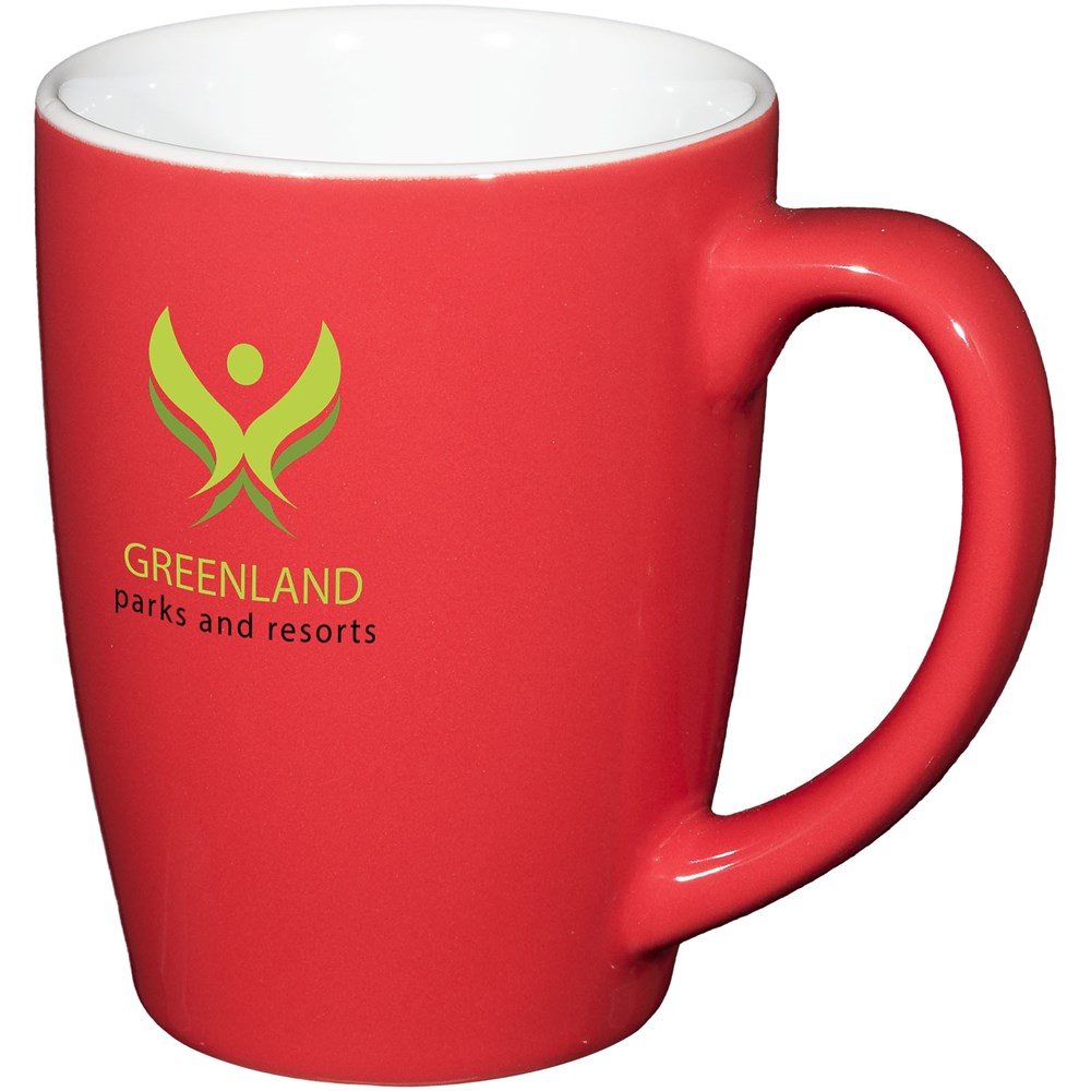 350 ml Keramiktasse im trendigen Design. Spülmaschinenfest EN12875-1 konform (bei bis zu 125 Waschvorgängen) für alle Werbeanbringungsmethoden. Mit weißem Karton.