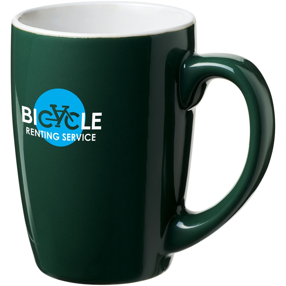 350 ml Keramiktasse im trendigen Design. Spülmaschinenfest EN12875-1 konform (bei bis zu 125 Waschvorgängen) für alle Werbeanbringungsmethoden. Mit weißem Karton.
