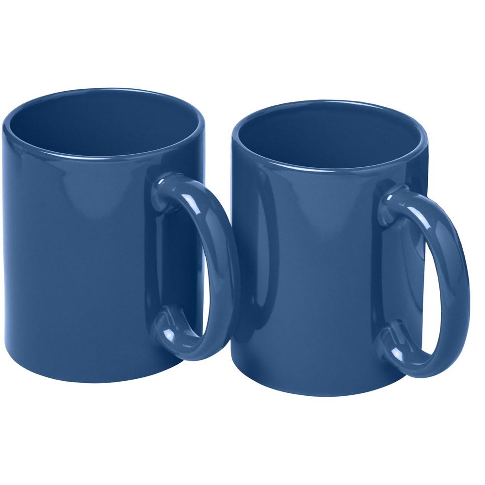 Geschenkset mit zwei keramischen 330-ml-Bechern. Präsentiert in einer weißen Geschenkbox mit durchsichtigem Fenster.