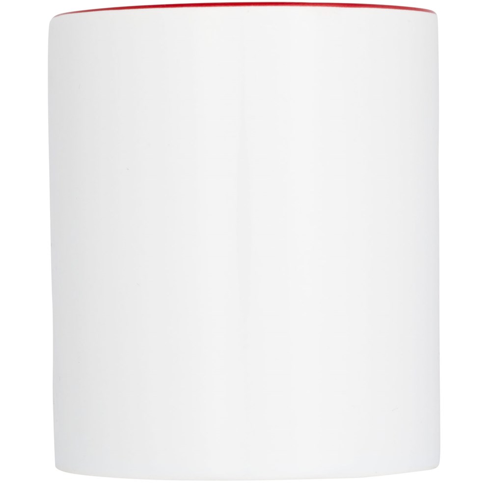 Geschenkset mit vier keramischen 330-ml-Bechern. Präsentiert in einer weißen Geschenkbox mit durchsichtigem Fenster.