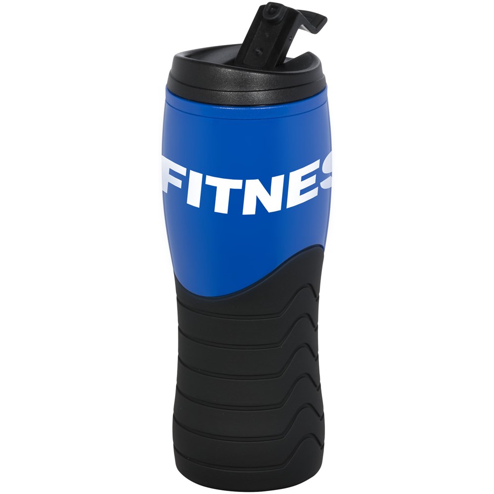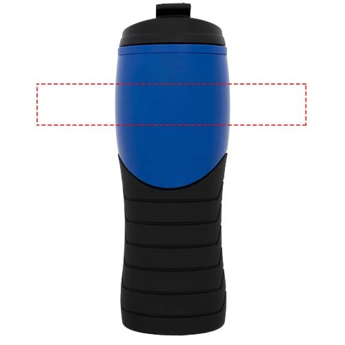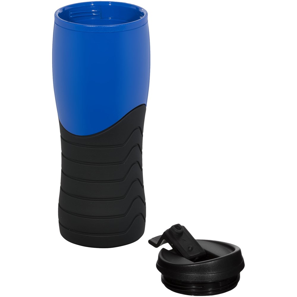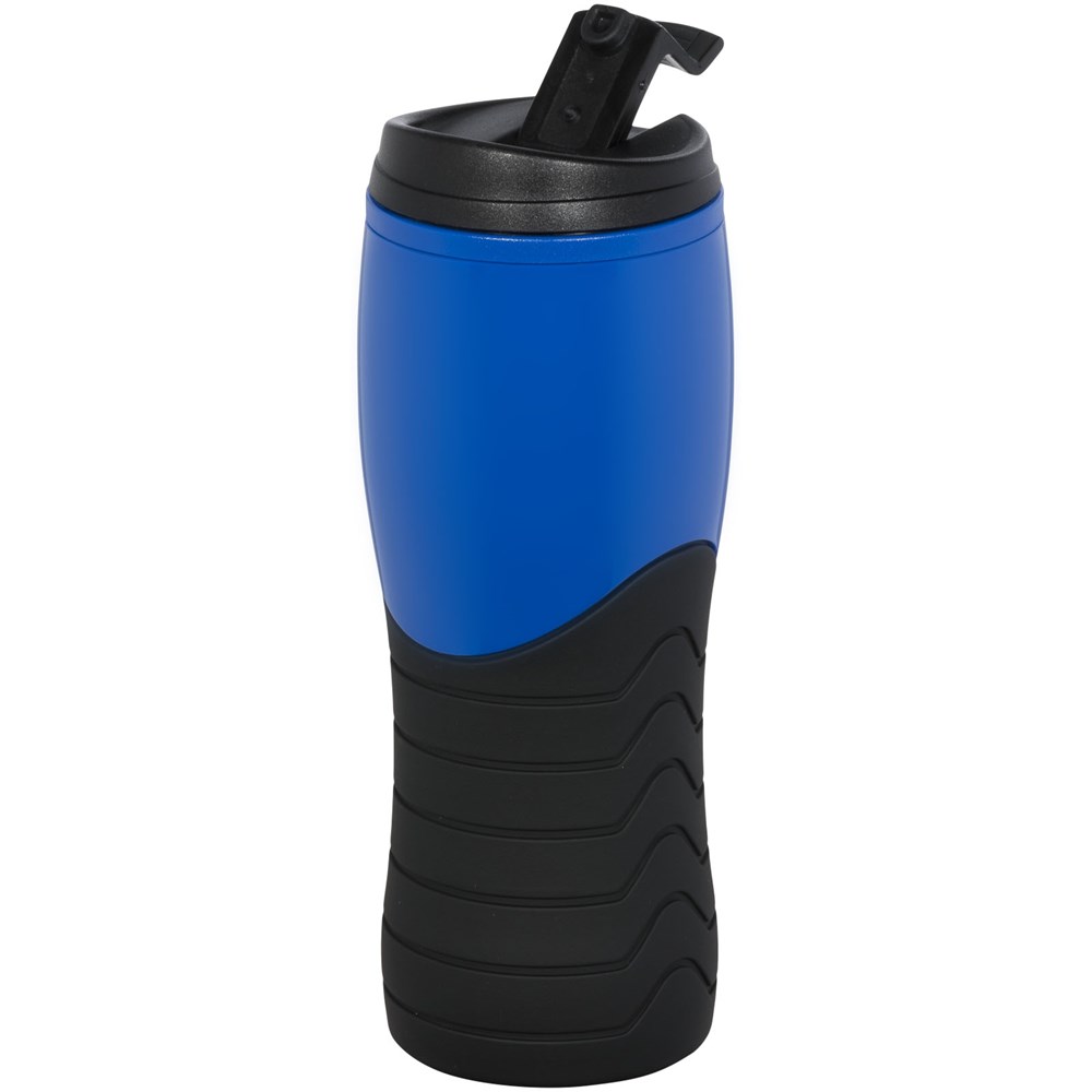 Doppelwandiger Becher mit auslaufsicherem Schraubdeckel. Verfügt über eine texturierte gummierte Basis mit glänzendem Oberteil. Fassungsvermögen 400 ml.