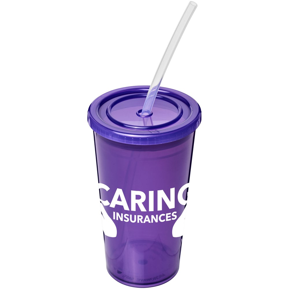 Doppelwandiger, lichtdurchlässiger Isolierbecher. Lieferung mit flexiblem Silikon-Strohhalm. Das Fassungsvermögen beträgt 350 ml. Hergestellt in Großbritannien.