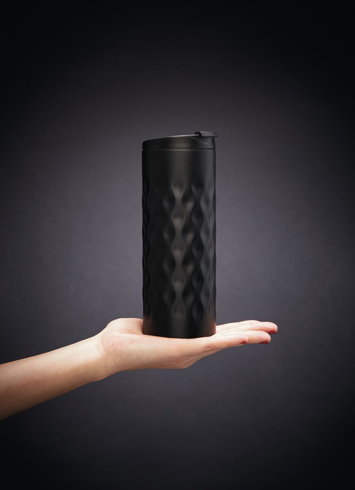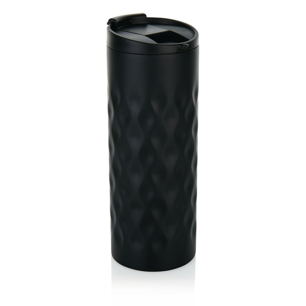Doppelwandiger Becher aus Edelstahl mit trendigem, geometrischem Cut-Design. Inhalt: 350ml. Nur... mehr