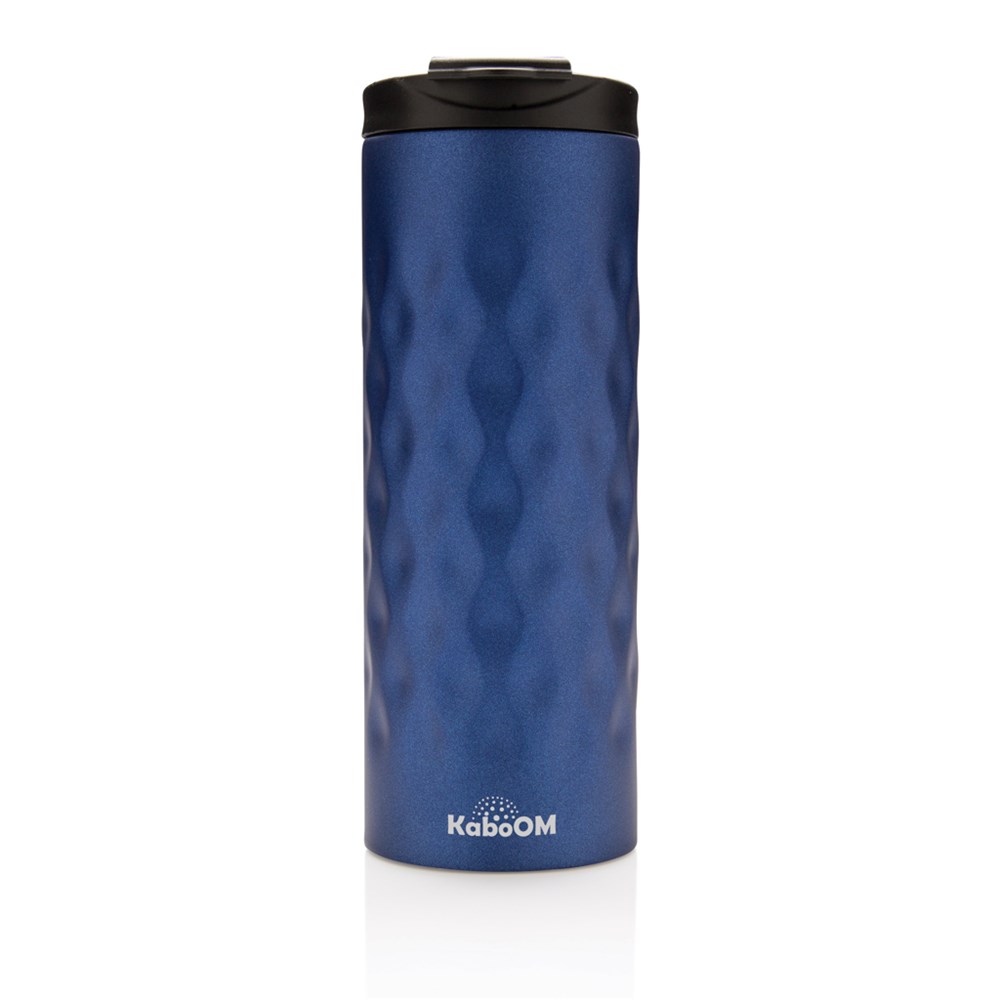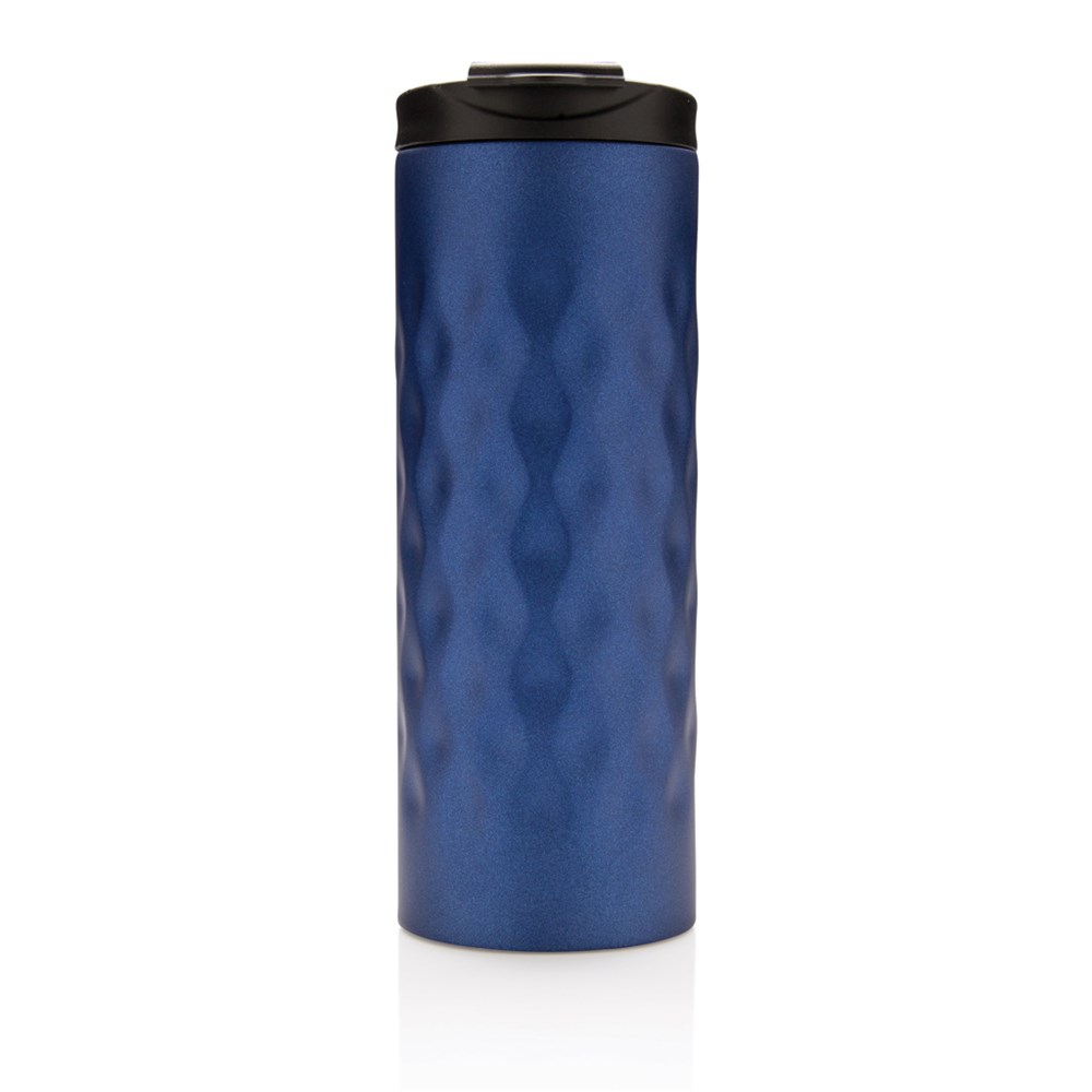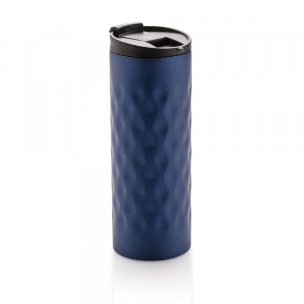 Doppelwandiger Becher aus Edelstahl mit trendigem, geometrischem Cut-Design. Inhalt: 350ml. Nur Handwäsche.