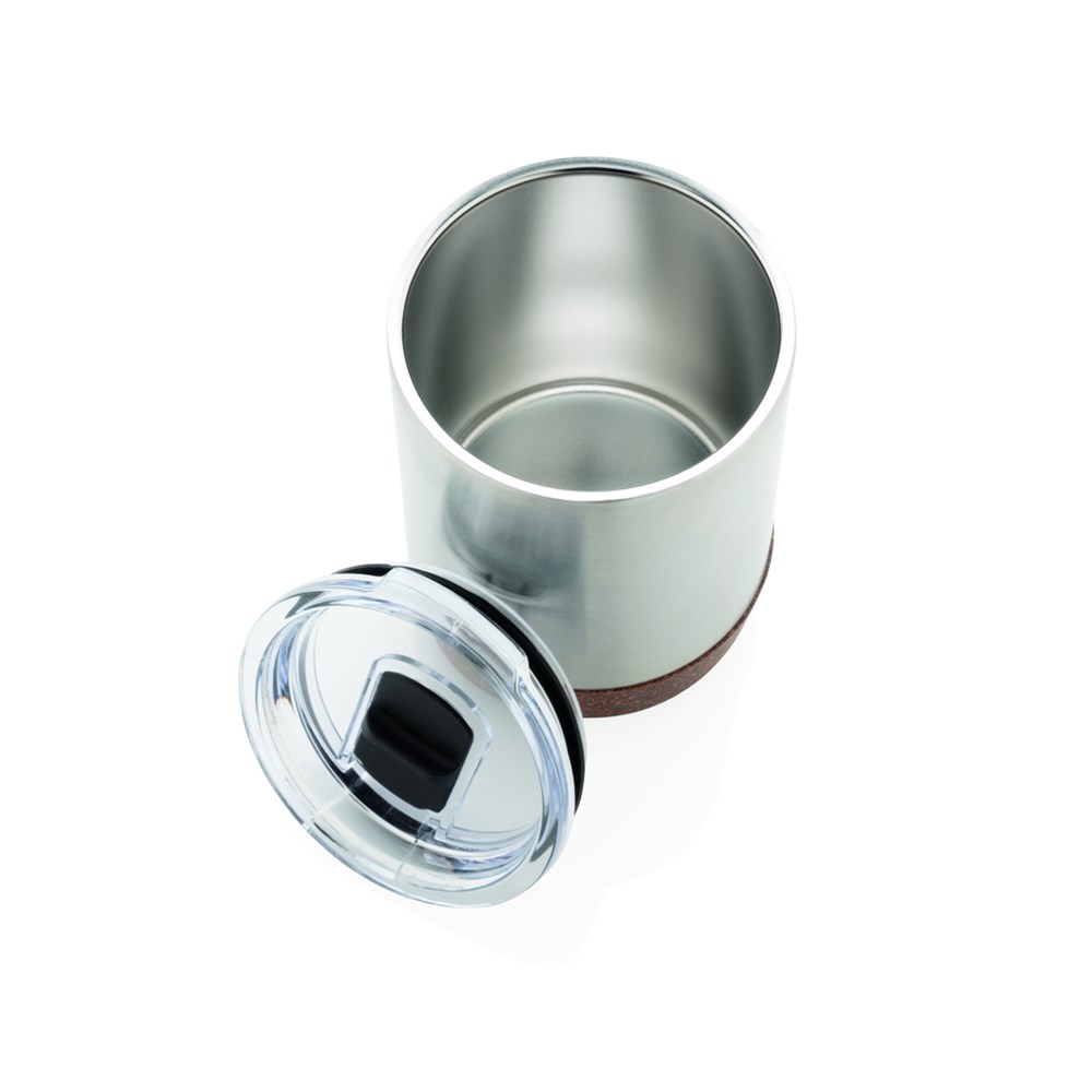 Vakuumisolierte Tasse mit schicken Kork-Details. 304 SS im Inneren und 201 SS außen - hält Ihre Getränke bis zu 15h kalt und bis zu 5h warm, Passt unter die meisten Kaffeemaschinen. Inhalt: 180ml. Nur Handwäsche.