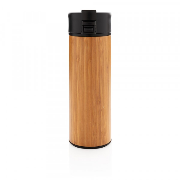 Zeitloses Bambus-Design für Ihre Getränke auf der Arbeit oder unterwegs. Mit verschließbarem auslaufsicherem Deckel der sich mit einer Hand öffnen und schließen lässt. Aus 304 Stainless Stell außen und 201 Stainless Stell im Inneren. Hält Ihre Getränke bis zu 5h warm und bis zu 15h kalt. Inhalt: 450 ml. Nur Handwäsche. Registered design®