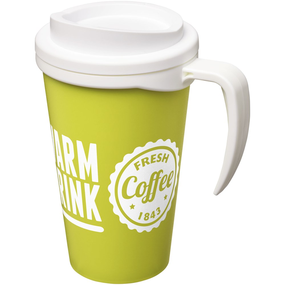 Doppelwandiger Isolierbecher mit Schraubverschluss und integriertem Griff. Mischen und kombinieren Sie Farben, um Ihren perfekten Becher zu kreieren. Kontaktieren Sie den Kundendienst für weitere Farboptionen. Hergestellt in Großbritannien. Präsentiert in einer weißen Geschenkschachtel.