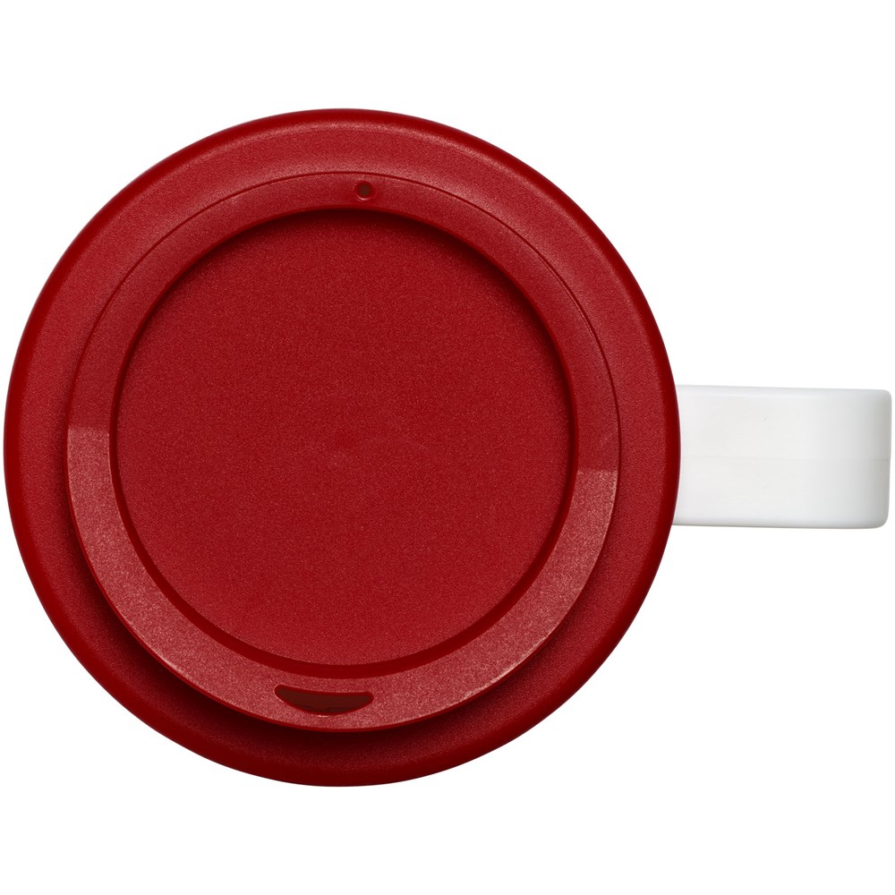 Doppelwandiger Isolierbecher mit aufschraubbarem, auslaufsicherem Deckel und integriertem Griff. Der Becher verfügt über ein vollfarbiges, umlaufendes Design, das an das Produkt angepasst ist – für Strapazierfähigkeit und Haltbarkeit. EN12875-1 konform; spülmaschinen- und mikrowellenfest. Das Fassungsvermögen beträgt 350 ml. Mischen und kombinieren Sie Farben, um Ihren perfekten Becher zu kreieren. Kontaktieren Sie den Kundendienst für weitere Farboptionen. Hergestellt in Großbritannien. Präsentiert in einer weißen Geschenkschachtel. Mindestabnahmemenge 50 Stück.