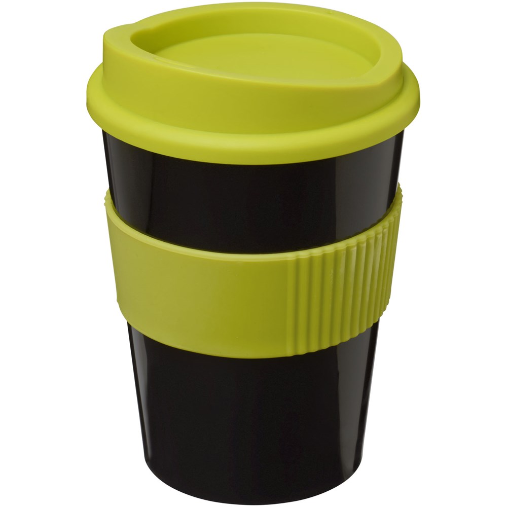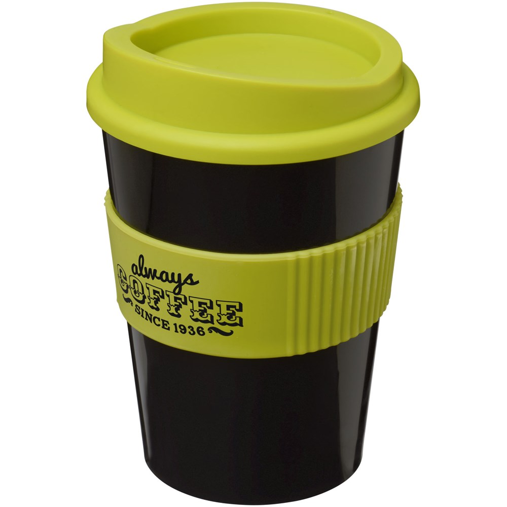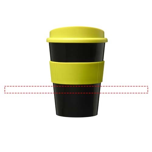 Einwandiger Becher mit Stülpdeckel und Silikon Schutzring. Das Fassungsvermögen beträgt 300 ml.... mehr
