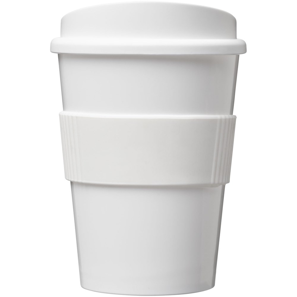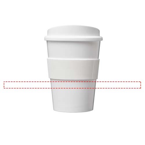 Einwandiger Becher mit Stülpdeckel und Silikon Schutzring. Das Fassungsvermögen beträgt 300 ml.... mehr
