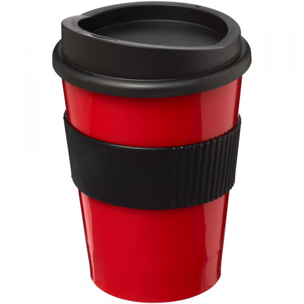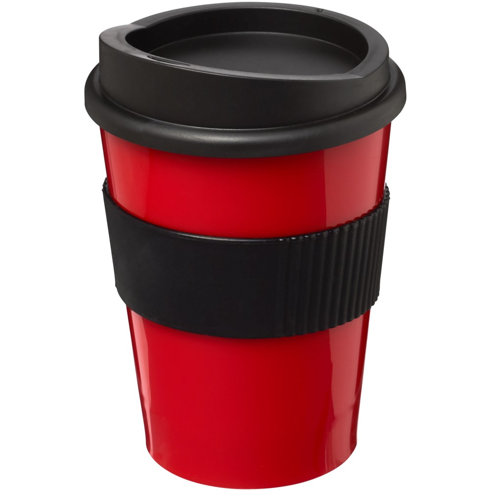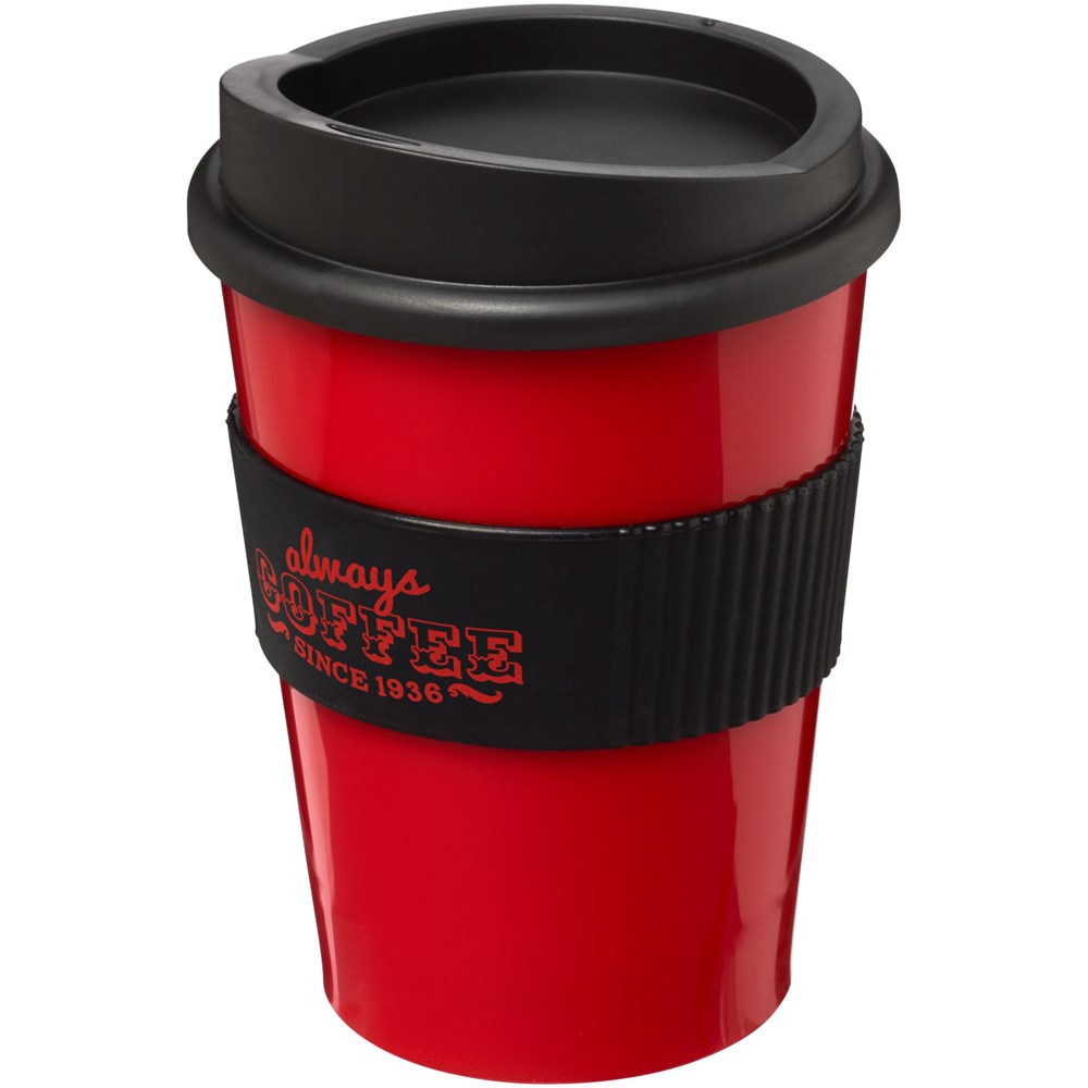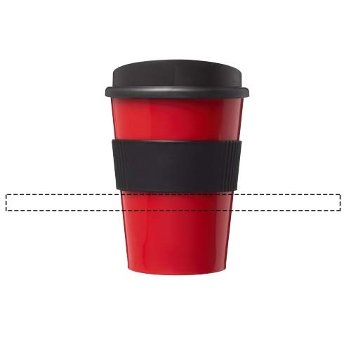 Einwandiger Becher mit Stülpdeckel und Silikon Schutzring. Das Fassungsvermögen beträgt 300 ml.... mehr