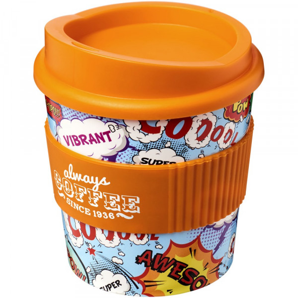 Einwandiger Becher mit aufsteckbarem, auslaufsicherem Deckel und Silikongriff. Passt unter die meisten Kaffeemaschinen. Der Becher verfügt über ein vollfarbiges, umlaufendes Design, das an das Produkt angepasst ist – für Strapazierfähigkeit und Haltbarkeit. EN12875-1 konform; spülmaschinen- und mikrowellenfest. Das Fassungsvermögen beträgt 250 ml. Mischen und kombinieren Sie Farben, um Ihren perfekten Becher zu kreieren. Kontaktieren Sie den Kundendienst für weitere Farboptionen. Hergestellt in Großbritannien. Mindestabnahmemenge 50 Stück. Verpackt in einem kompostierbaren Beutel.