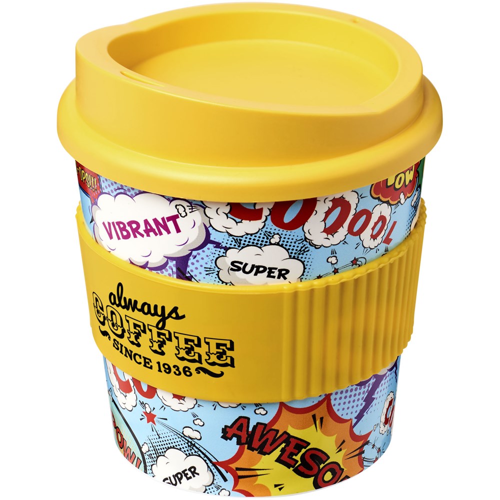 Einwandiger Becher mit aufsteckbarem, auslaufsicherem Deckel und Silikongriff. Passt unter die meisten Kaffeemaschinen. Der Becher verfügt über ein vollfarbiges, umlaufendes Design, das an das Produkt angepasst ist – für Strapazierfähigkeit und Haltbarkeit. EN12875-1 konform; spülmaschinen- und mikrowellenfest. Das Fassungsvermögen beträgt 250 ml. Mischen und kombinieren Sie Farben, um Ihren perfekten Becher zu kreieren. Kontaktieren Sie den Kundendienst für weitere Farboptionen. Hergestellt in Großbritannien. Mindestabnahmemenge 50 Stück. Verpackt in einem kompostierbaren Beutel.