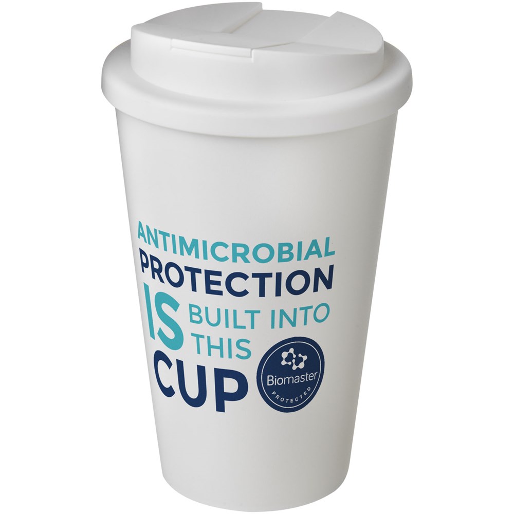 Doppelwandiger Isolierbecher mit einem Volumen von 350 ml. Trinköffnung mit Clip verhindert auslaufen und schließt ohne Silikon. Enthält die antimikrobielle Biomaster-Technologie, die schutzfähig ist gegen das Wachstum schädlicher Mikroorganismen auf der Oberfläche. Dies ist wirksam für die Lebensdauer des Produkts, und hat keinen Einfluss auf die Recyclingfähigkeit des Bechers. Hergestellt in Großbritannien. Verpackt in einem kompostierbaren Beutel.
