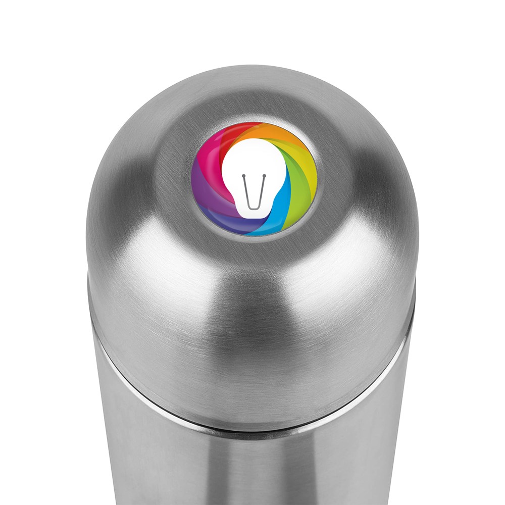 Die Tefal Senator Isolierflasche 0,7 L ist eine praktische und stilvolle Möglichkeit, Getränke stundenlang heiß oder kalt zu halten, egal wo Sie unterwegs sind. Das einfach zu bedienende Safe-Loc-System verhindert Tropfen beim Ausgießen sowie Auslaufen unterwegs. Das robuste Edelstahlgehäuse mit doppelwandiger Isolierung hält Getränke heiß (12 Stunden) und kalt (24 Stunden). Senator ist komplett auslaufsicher, so dass Sie die Flasche in Ihrer Tasche verstauen können, ohne sich weiter Gedanken machen zu müssen. Diese Flasche wird mit einem Vollfarbdruck auf der Flasche und einem Doming auf der Oberseite der Kappe personalisiert.