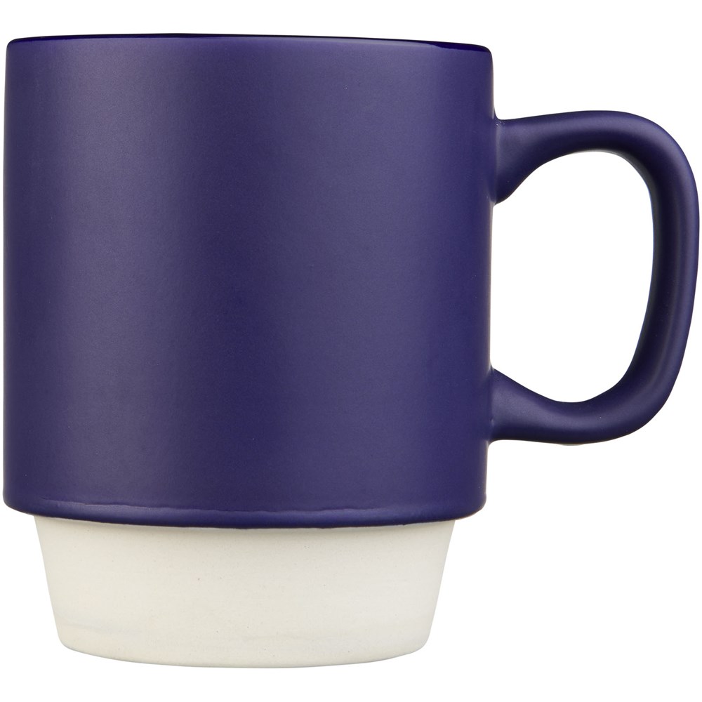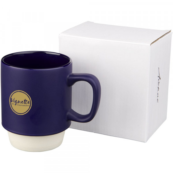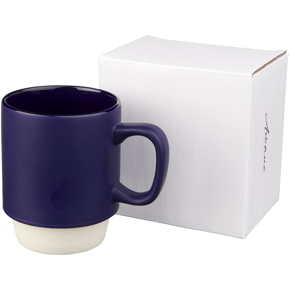 Schöner Keramikbecher mit einem matten Finish und trendiger unglasierter Unterseite. Stapelbar aufgrund des Designs. Spülmaschinenfest EN12875-1 konform (bei bis zu 125 Waschvorgängen) für alle Werbeanbringungsmethoden. Das Fassungsvermögen beträgt 420 ml. Präsentiert in einer Avenue-Geschenkschachtel.