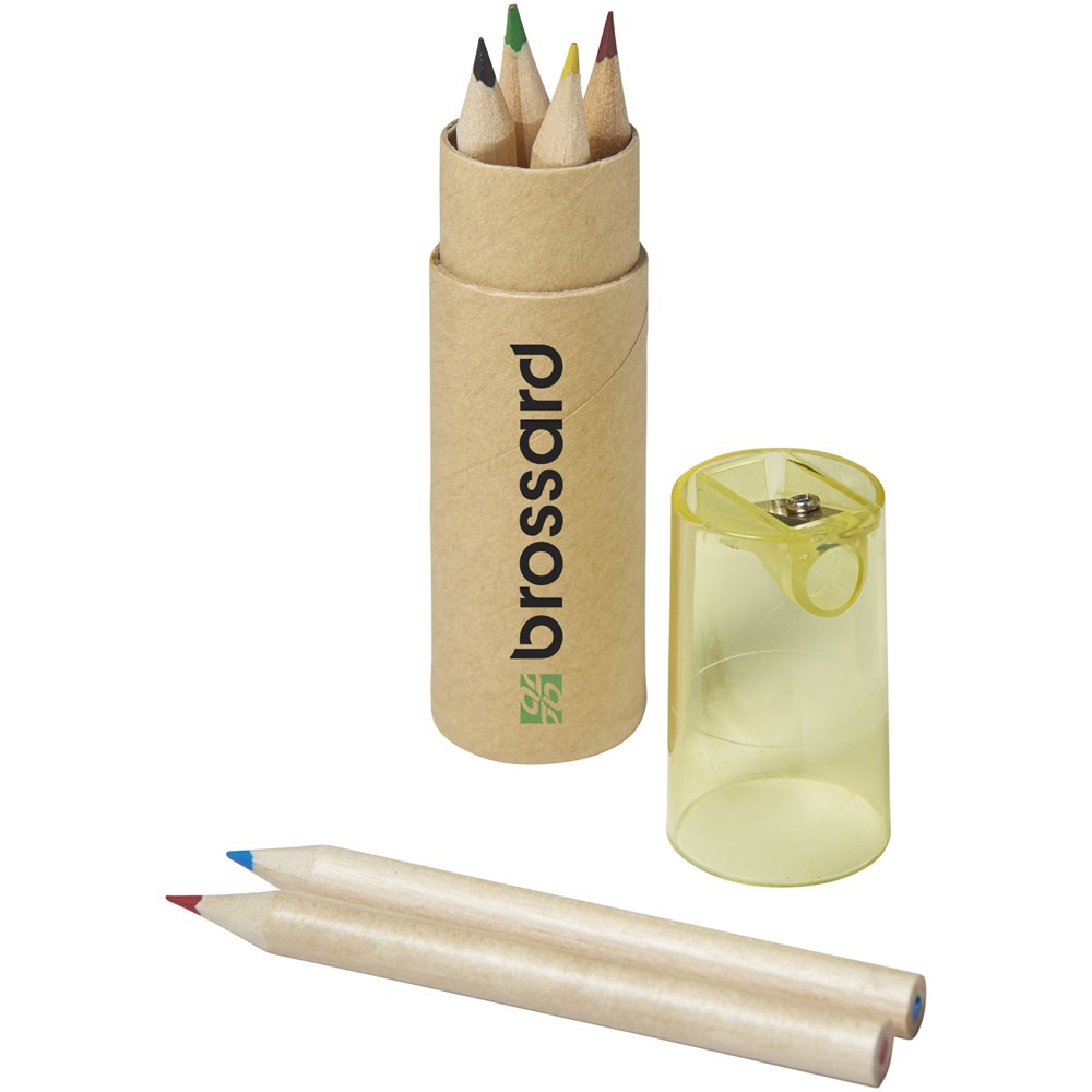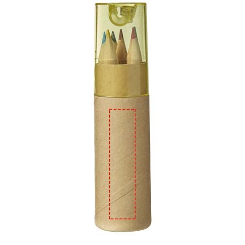 6 Farbstifte in zylinderförmigem Karton mit Spitzer im Kunststoffdeckel. mehr