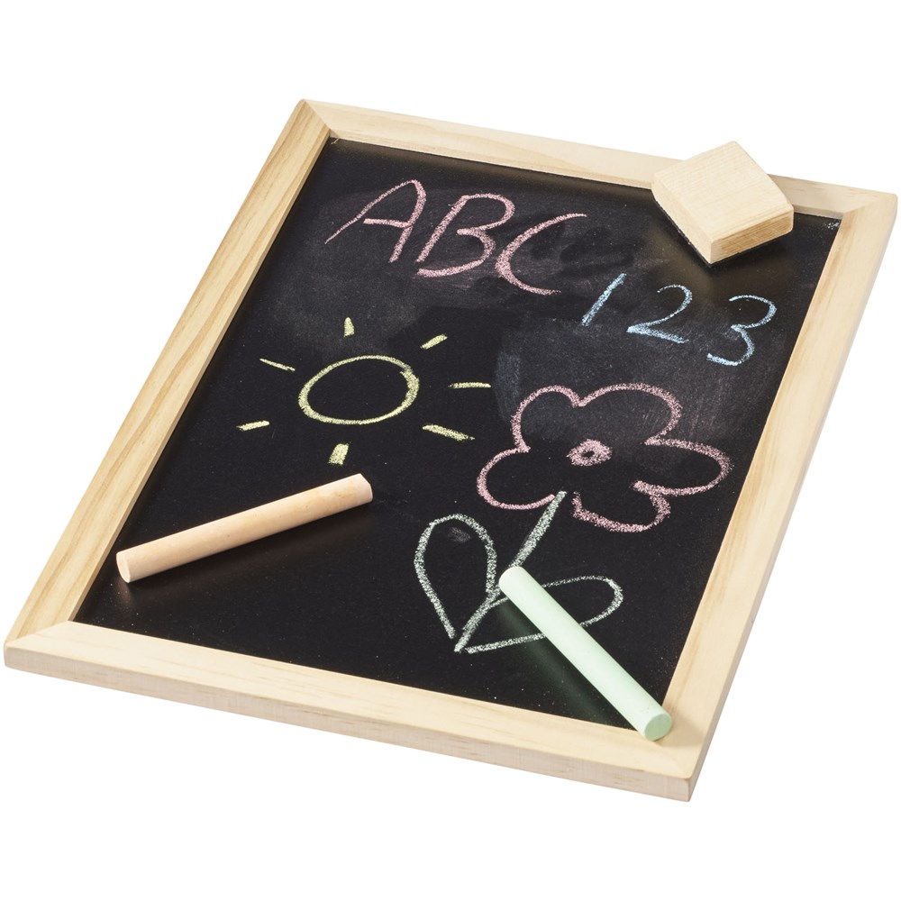 Tafel mit bunter Kreide in 6 Farben und einem Radierer. Verpackt in einer Geschenkbox. Aufgrund der Materialbeschaffenheit von Kreide, kann sie während des Transportes zerbrechen.