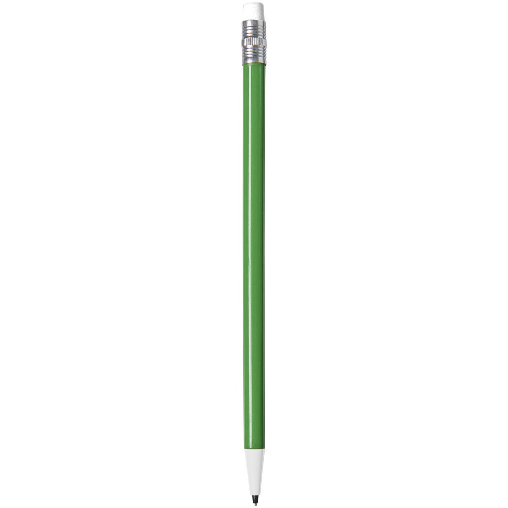 Druckbleistift mit Radiergummi, Inkl. zwei 0,7 mm Minen, auffüllbar.