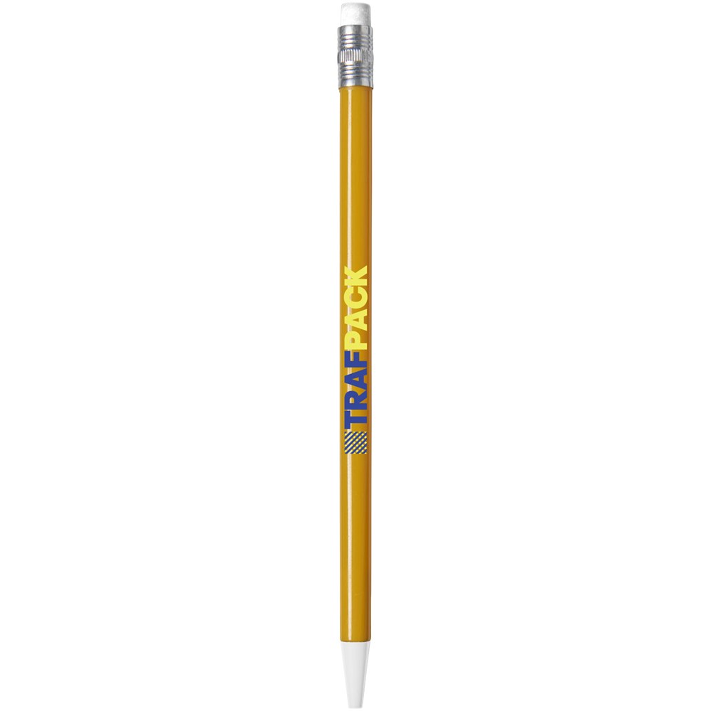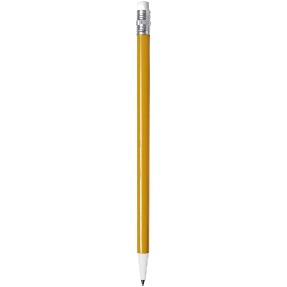 Druckbleistift mit Radiergummi, Inkl. zwei 0,7 mm Minen, auffüllbar.