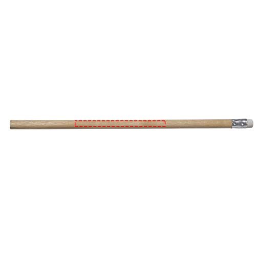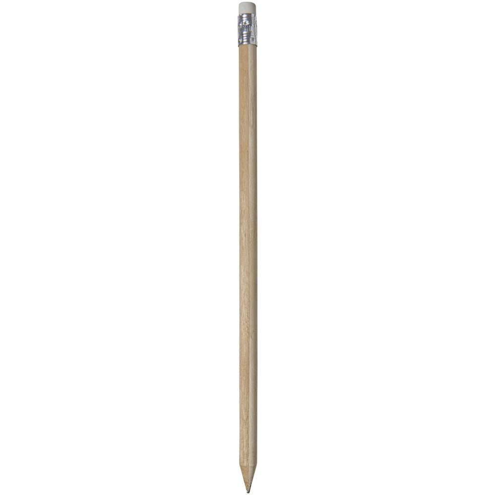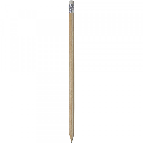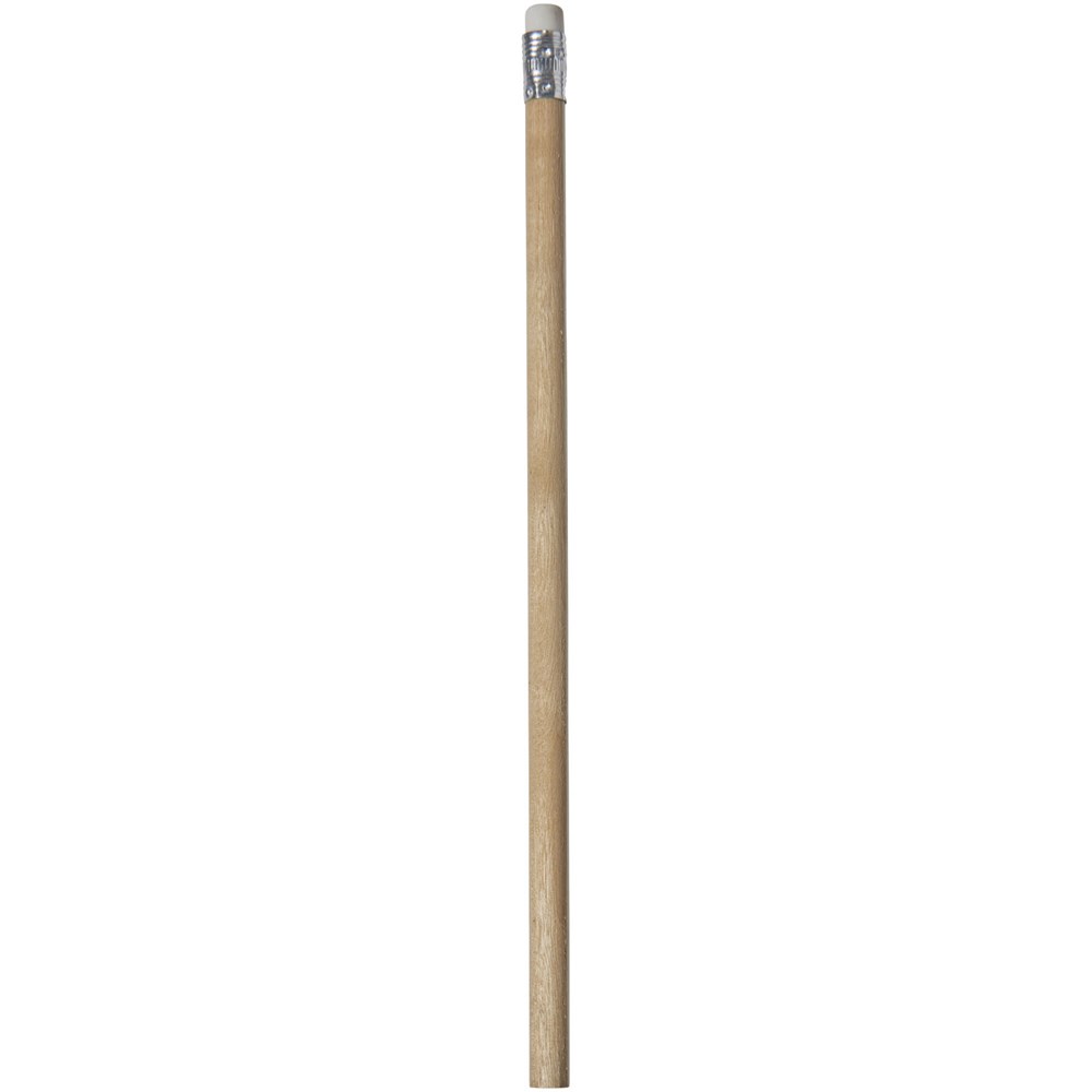 Hölzerner Bleistift mit natürlichem Schaft und farbigem Radiergummi. Nicht angespitzt.