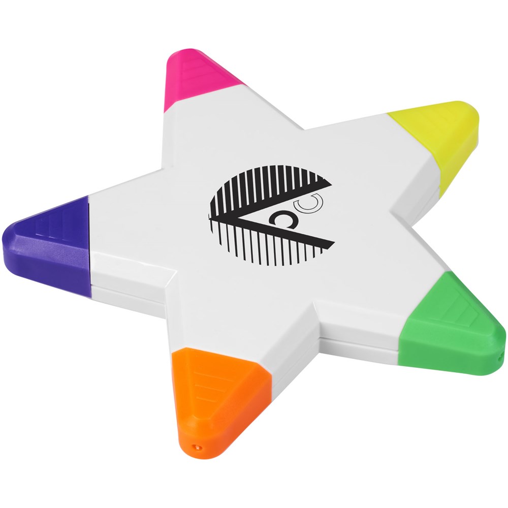 Fünf Marker in kräftigen Farben in Sternform. mehr