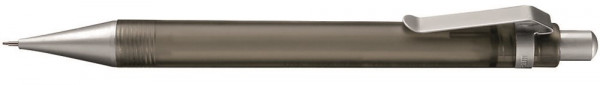 Druckbleistift (0,7mm) mit transparent gefrostetem oder gedecktem Schaft. Metalldrücker, -clip und -spitze verchromt.