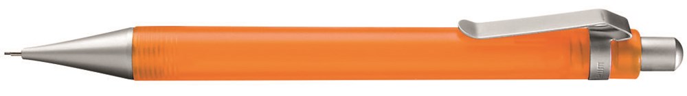 Druckbleistift (0,7mm) mit transparent gefrostetem oder gedecktem Schaft. Metalldrücker, -clip und -spitze verchromt.