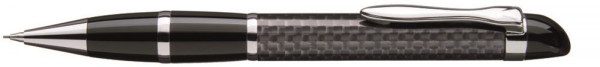 Edler Carbonfaser-Drehbleistift mit flexiblem, glanzverchromtem Metallclip, Metallzierringen,... mehr