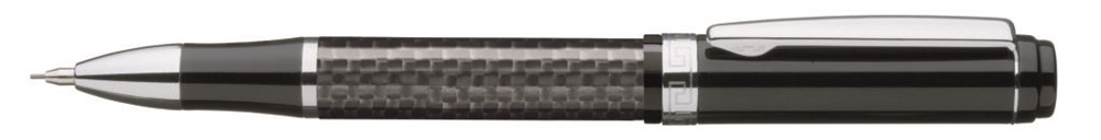 Carbonfaser-Drehbleistift (0,7 mm) mit Radiergummi im Schaft und Metallbeschlagteilen glanzverchromt.