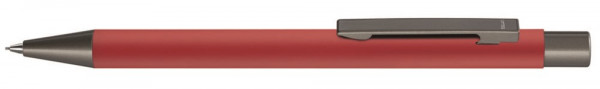 Metall-Druckbleistift (0,7mm) mit Softtouch-Schaft, Metallclip, Metallspitze, Clip und Drücker in GUN metallic. Mit Radiergummi im Drücker.