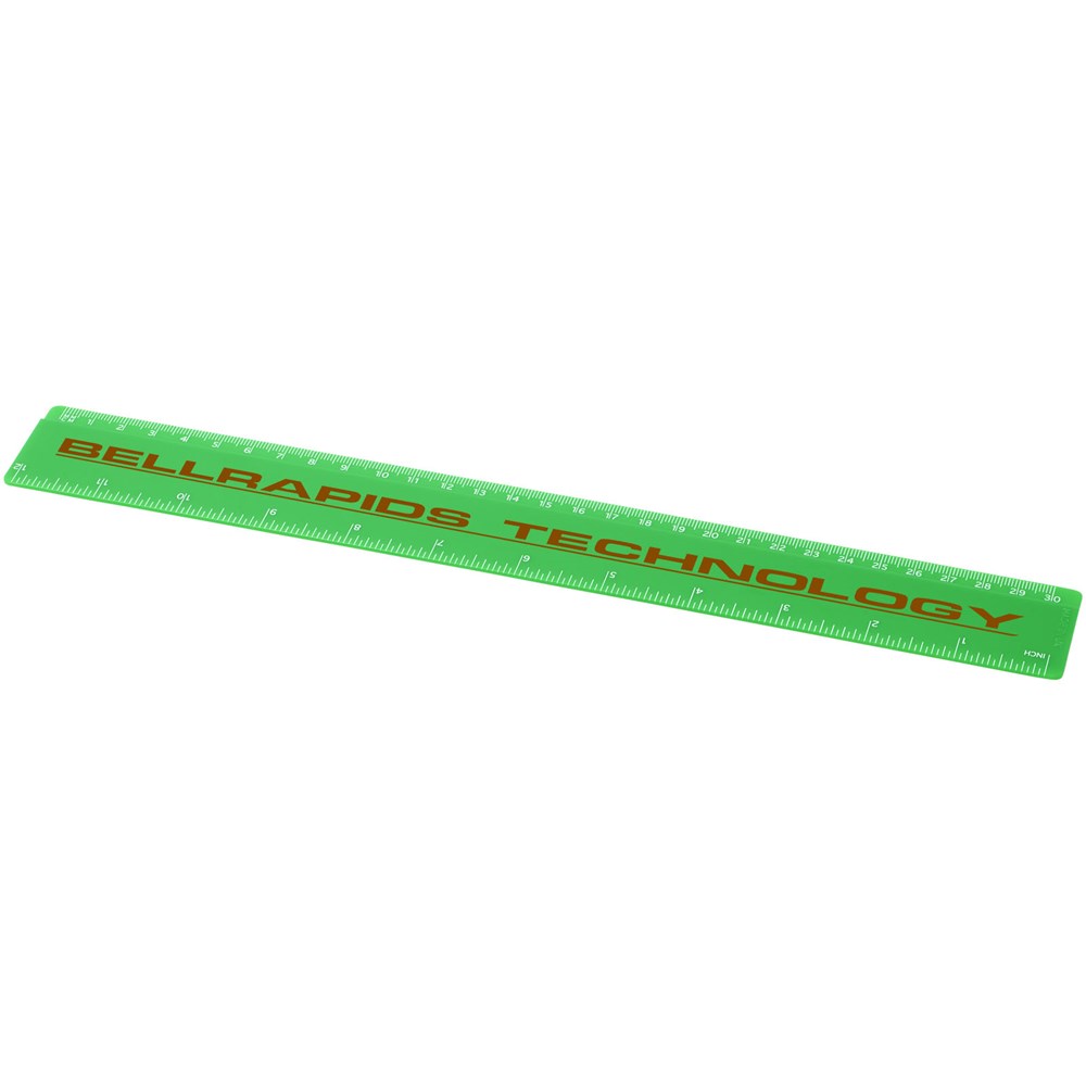 Stabiles Kunststoff Lineal mit Markierungen in Zoll und Zentimeter. Bitte beachten Sie, dass die Linealmarkierungen zusammen mit Ihrer Druckvorlage aufgedruckt werden, unveredelte Lineale haben keine Markierungen und sind blank.