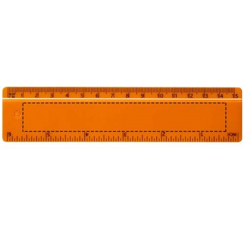 Stabiles Plastiklineal. Markierungen in Zoll und Zentimeter. Bitte beachten Sie, dass die Linealmarkierungen zusammen mit Ihrer Druckvorlage aufgedruckt werden, unveredelte Lineale haben keine Markierungen und sind blank.
