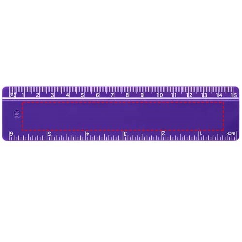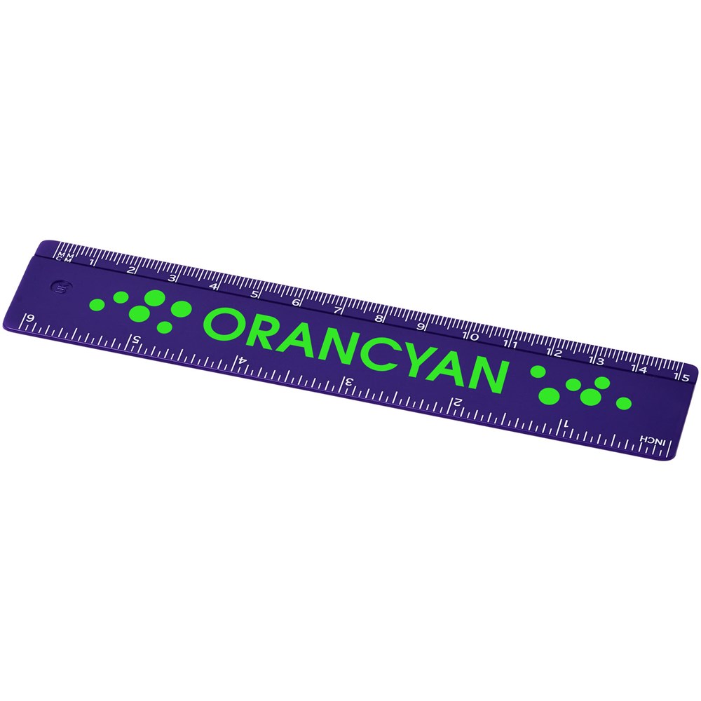 Stabiles Plastiklineal. Markierungen in Zoll und Zentimeter. Bitte beachten Sie, dass die Linealmarkierungen zusammen mit Ihrer Druckvorlage aufgedruckt werden, unveredelte Lineale haben keine Markierungen und sind blank.