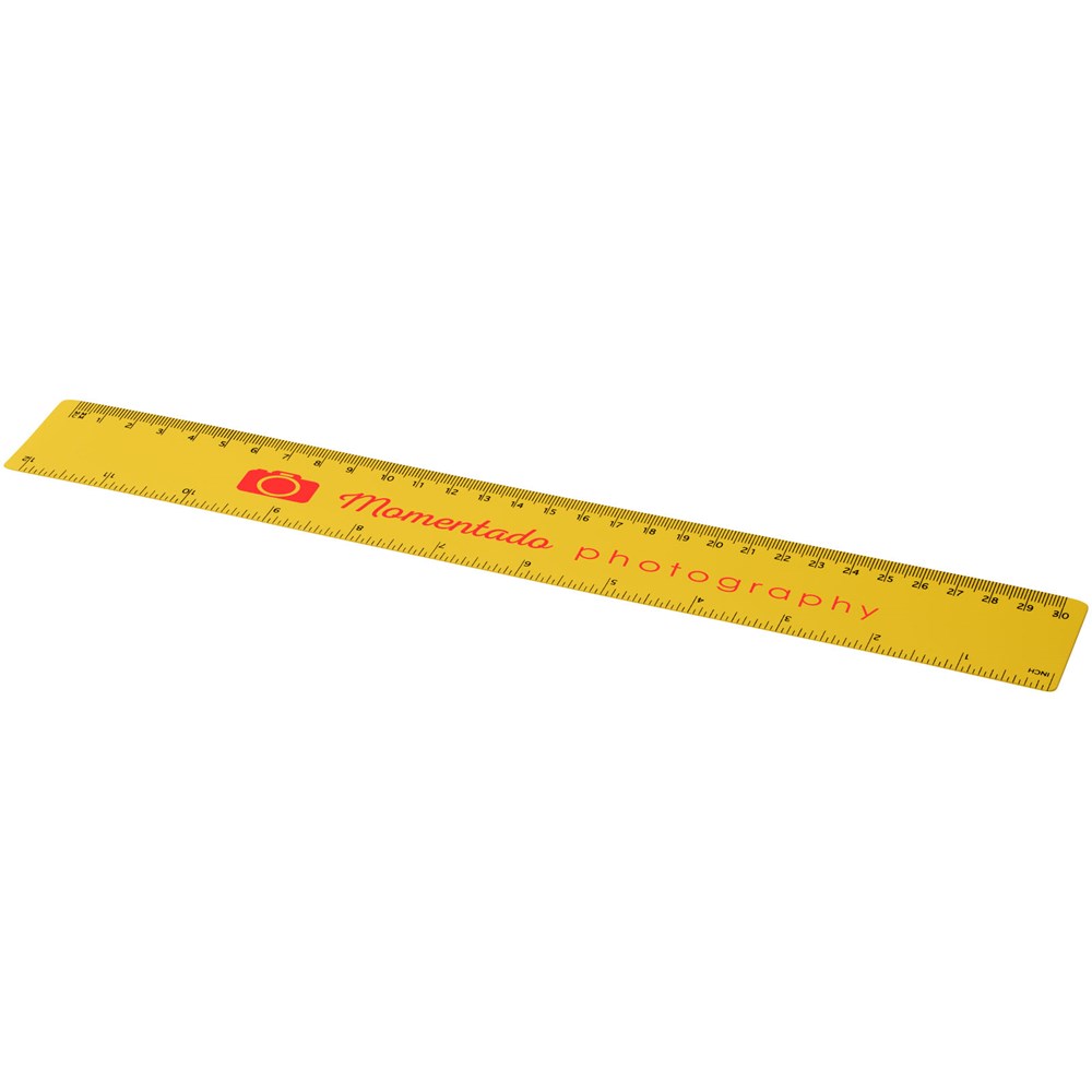 Flexibles, leichtes Plastiklineal mit Markierungen in Zoll und Zentimeter. Bitte beachten Sie, dass die Linealmarkierungen zusammen mit Ihrer Druckvorlage aufgedruckt werden, unveredelte Lineale haben keine Markierungen und sind blank.