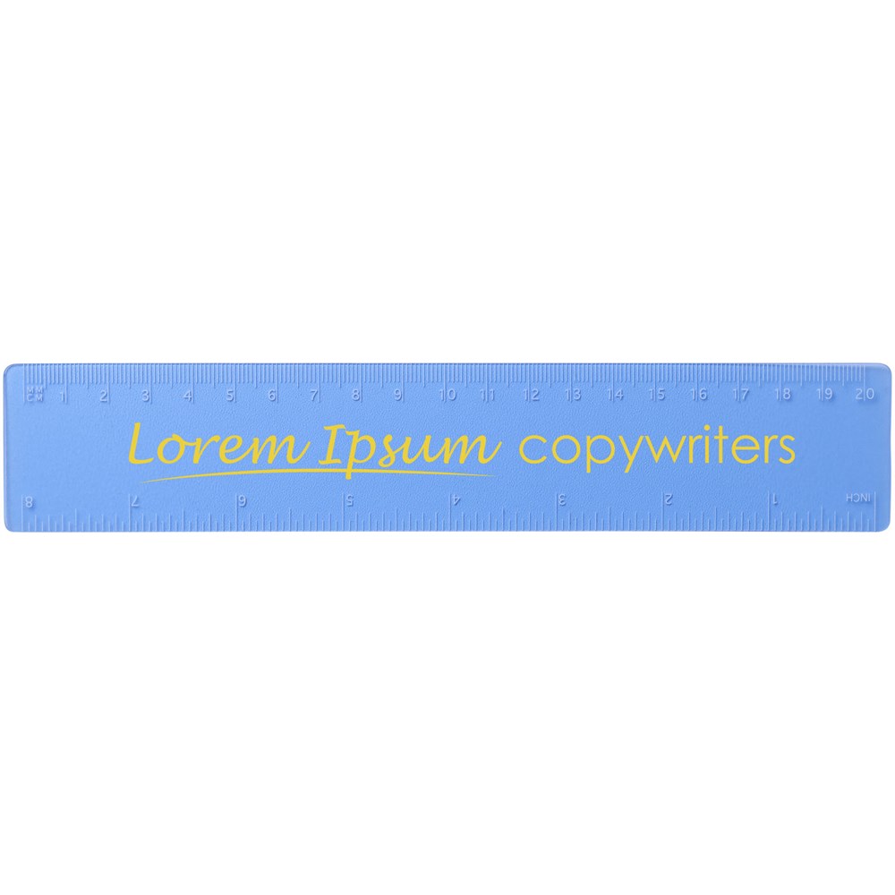 Flexibles, leichtes Kunststoff Lineal mit Markierungen in Zoll und Zentimeter. Bitte beachten Sie, dass die Linealmarkierungen zusammen mit Ihrer Druckvorlage aufgedruckt werden, unveredelte Lineale haben keine Markierungen und sind blank.