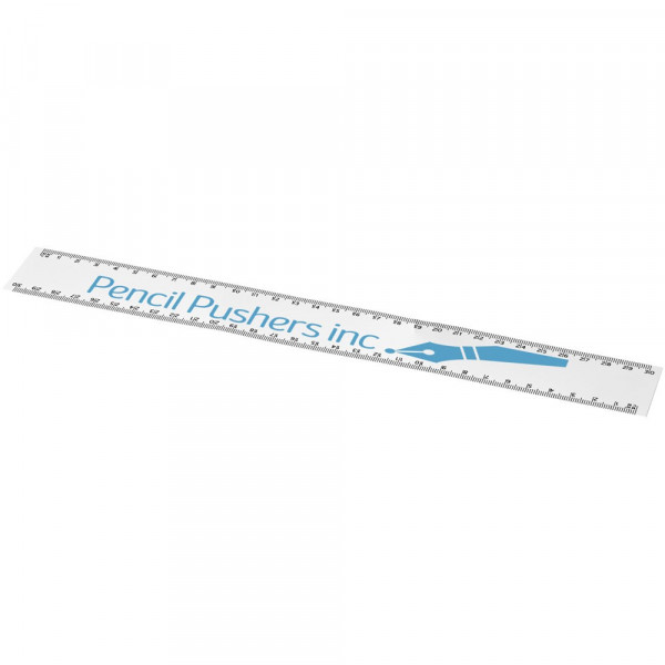Flexibles, leichtes Plastiklineal aus 450 g/m2 synthetischem Papier mit Markierungen in Zoll und Zentimeter. Bitte beachten Sie, dass die Linealmarkierungen zusammen mit Ihrer Druckvorlage aufgedruckt werden, unveredelte Lineale haben keine Markierungen und sind blank.