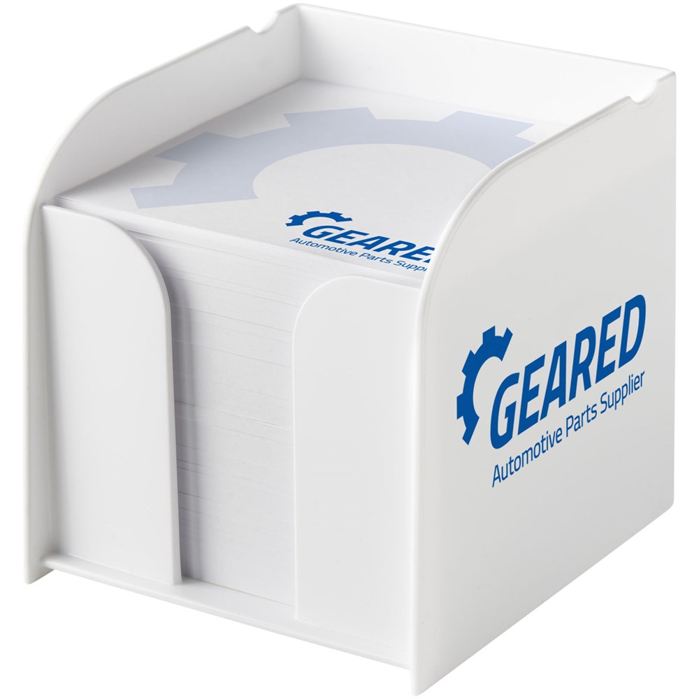 Enthält ca. 800 Blatt loses Blankopapier (80 g/m2). Digital- oder Tampondruck auf allen drei Seiten des Kunststoffbox möglich. Druck ist auch auf jedem Blatt möglich.