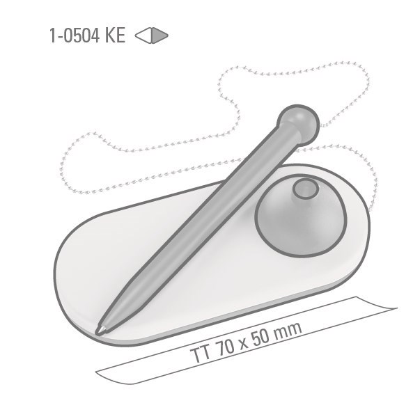 Kugelschreiberständer mit Kugelschreiber an einer Metallkette. Große Werbeplatte. Minentype: uma... mehr
