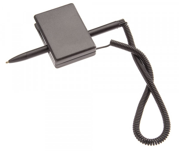 Haftklammer mit Kugelschreiber an einer Kunststoffspirale in schwarz oder weiß. Doppelkleber am... mehr