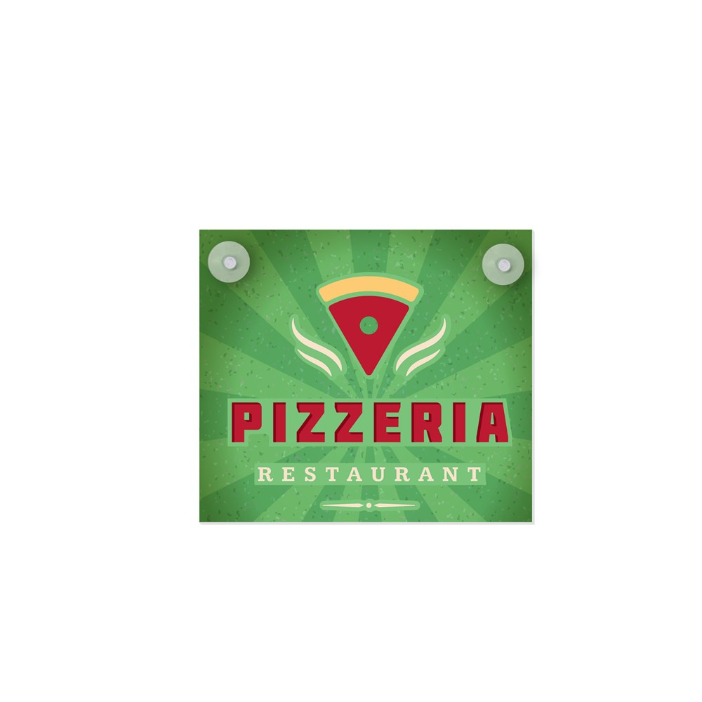 Das rechteckige Schild wird von innen mit Saugnäpfen am Fenster befestigt und ist super einfach zu platzieren und zu entfernen. Das Schild ist von außen sichtbar und ist mit einem Vollfarbdruck personalisiert. Der Durchmesser des Saugnapfes beträgt 2,2 cm.