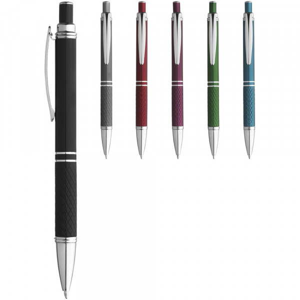 Kugelschreiber mit Klickmechanismus und geriffeltem Griff. mehr