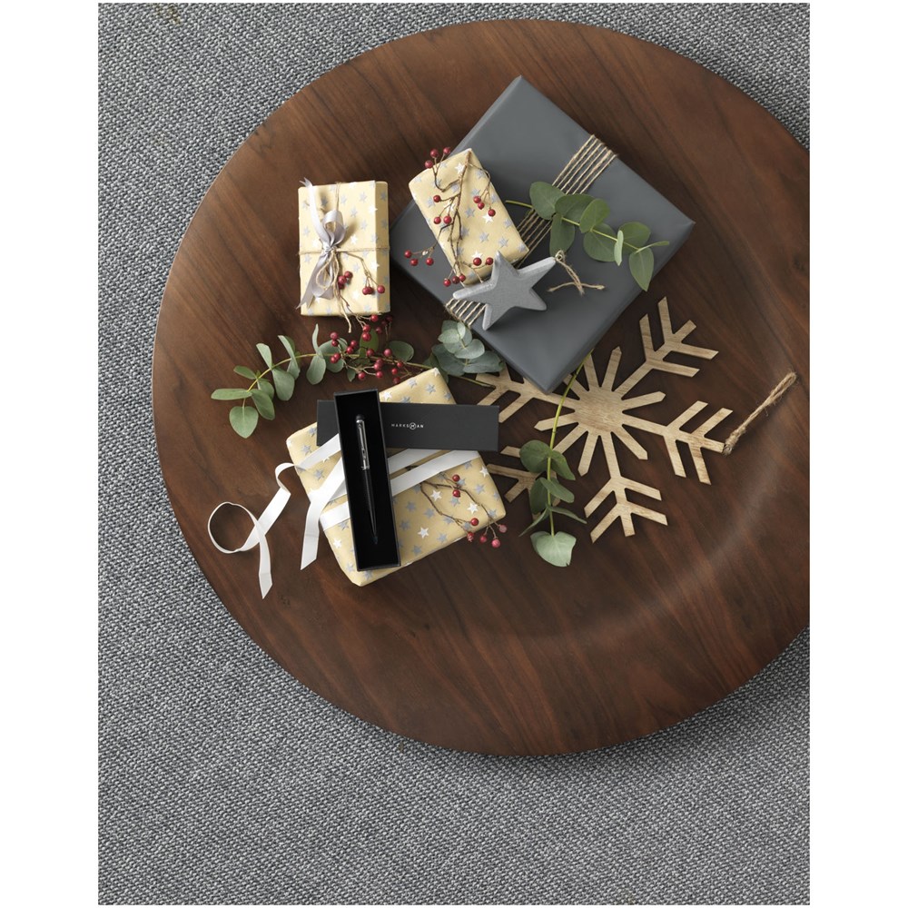 Der Stylus Kugelschreiber hat ein exklusives Design, mit einem stilvoll gemusterten unteren Gehäuse. Inkl. hochwertiger schwarzer Premium-Tinte zum Nachfüllen und in einer Geschenkbox von Marksman verpackt.